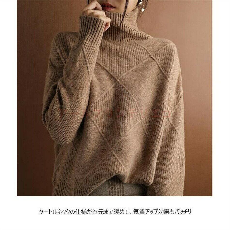 レディース用のニットセーターが新入荷 ゆったりとしたシルエットがカジュアルな雰囲気&フェミニンな抜け感を演出 手触りの柔らかな生地を使い、決してチクチクせず着心地的にも申し分無し タートルネックの仕様が首元まで暖めて、気質アップ効果もバッチリ ユニック感たっぷりの上品な編み模様も見逃せないお洒落ポイント 雰囲気異なる4色が用意され、落ち着いた定番色から明るい色まで 秋冬ファッションに必ず大活躍、通勤にも日常にも似合うマストアイテム 【カラー】ブラック、ブラウン、キャメル、イエロー 【サイズ(cm)】 S M L XL 2XL S 着丈58 バスト105 袖丈49 M 着丈59 バスト110 袖丈50 L 着丈60 バスト115 袖丈51 XL 着丈61 バスト120 袖丈52 2XL 着丈62 バスト125 袖丈53 ※商品には多少の個体差がございます。予めご了承くださいませ。 ※PC環境・光の具合により、色や素材のイメージが写真と若干異なる場合がございます。 ※モデル・写真に使用されているアクセサリー・小物は別途記載が無い限り付属いたしません。 ※商品のお色はお客様のPC環境によって多少色合い、見え方など違ってまいりますのでご了承下さいますようお願いします。 ※写真の色調はご使用のモニターの機種や設定により実際の商品と異なる場合があります。 ※商品のサイズは、全て平置きにて外寸を測定しております。 ※商品によっては±1cm〜3cmの誤差が発生してしまう場合がございます。予めご理解いただきますようお願い致します。 ※該当商品は他店と在庫共有です。タイミングにより、在庫ズレが生じる場合がございます。予めご了承ください。 ※パッケージは改良のため予告なく仕様を変更する場合があります、ご理解いただきますようお願い致します。