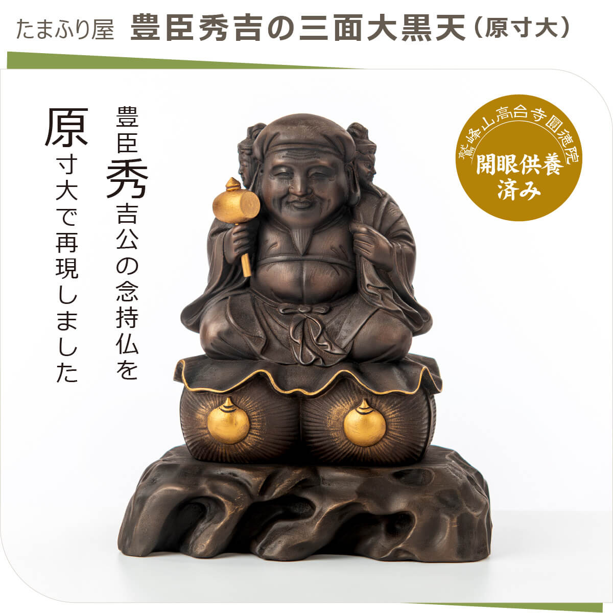 【開眼供養済み】 『豊臣秀吉の三面大黒天』原寸大(開運 三面大黒天 大黒天 弁財天 毘沙門天 仏像 木彫り 縁起物 念持仏 秀吉 圓徳院 お札付き 御守り 商売?盛 出世 良縁 公式 公認 開眼供養)