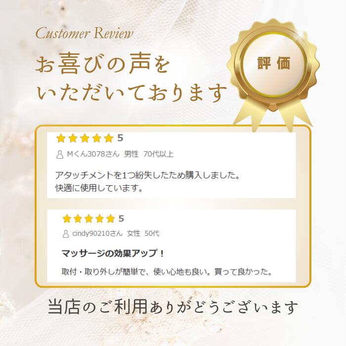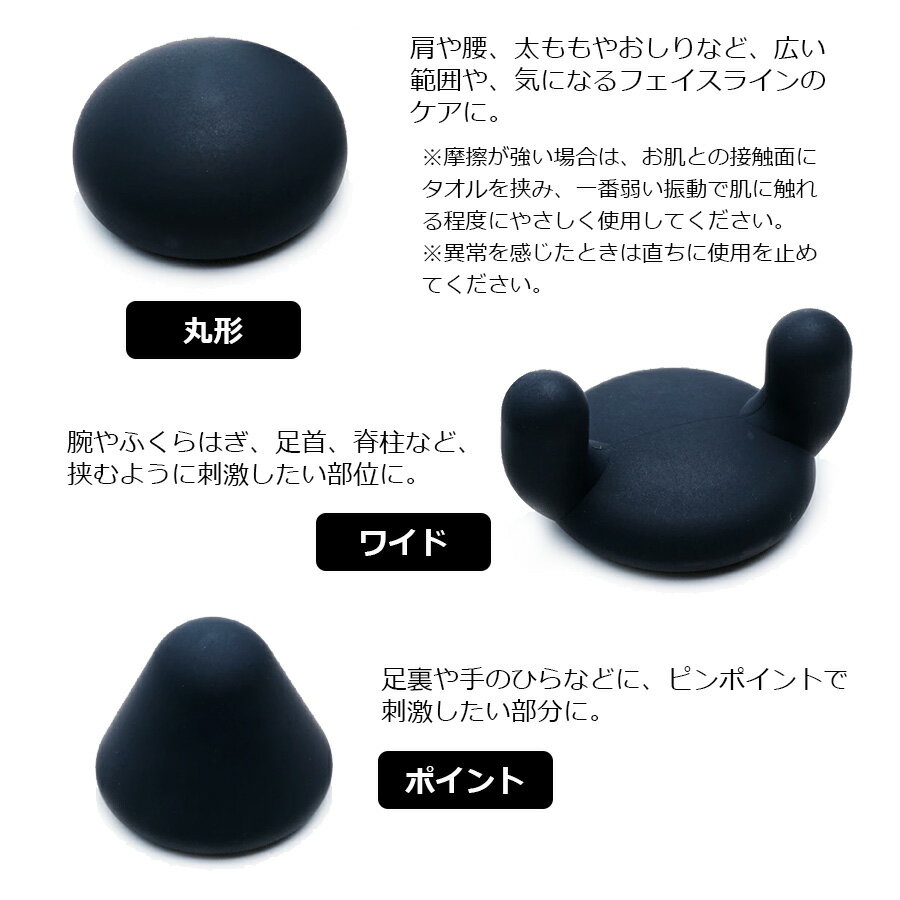 商品情報材質シリコン外形寸法丸形:Φ37×H19mmポイント:Φ34×H28mmワイド:ΦW50×D38×26mm質量丸形:約10gポイント:約10gワイド:約12gドクターエア エクサガンポケット アタッチメントセット REG-11AT アタッチメントセット ●丸形肩や腰、太ももやおしりなど、広い範囲や、気になるフェイスラインのケアに。※摩擦が強い場合は、お肌との接触面にタオルを挟み、一番弱い振動で肌に触れる程度にやさしく使用してください。※異常を感じたときは直ちに使用を止めてください。●ワイド腕やふくらはぎ、足首、脊柱など、挟むように刺激したい部位に。●ポイント足裏や手のひらなどに、ピンポイントで刺激したい部分に。 5