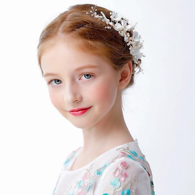 【送料無料】子供髪飾り 花 リーフ パール 小花モチーフ カチューシャ ウエディング ヘッドドレス フラワーティアラ 女の子用 髪飾り 子供 ピアノ発表会 ヘアアクセサリー 結婚式 入学式 パーティー女の子用小物