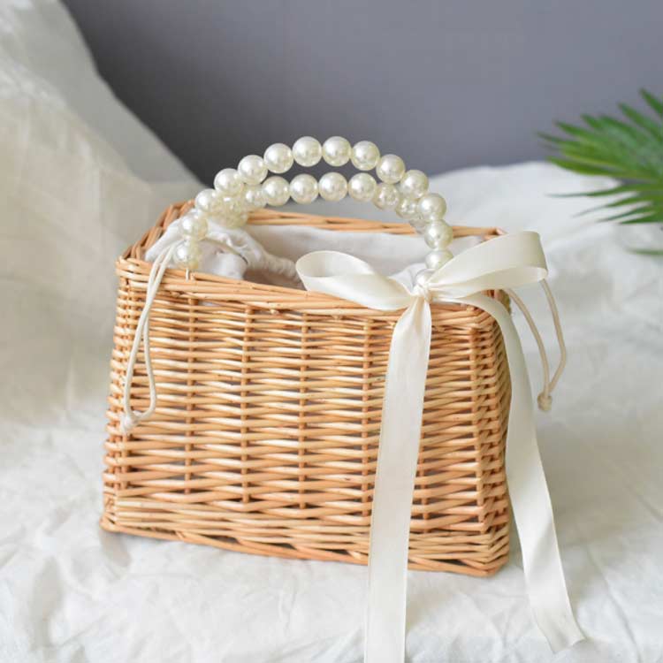 夏 リボン付き パールバッグ かごバッグ カゴバッグ かごバッグ サマーバッグ 巾着 籐 バッグ おしゃれ かわいい リボン付き レディース 巾着付き レジャーバッグ レース レディース