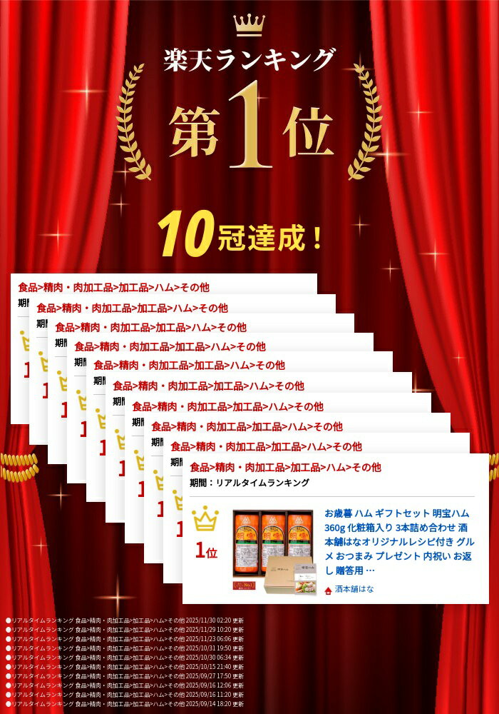 お歳暮 ハム ギフトセット 明宝ハム360g 化粧箱入り 3本詰め合わせ 酒本舗はなオリジナルレシピ付き グルメ おつまみ プレゼント 内祝い お返し 贈答用 冷蔵商品 クール便配送限定
