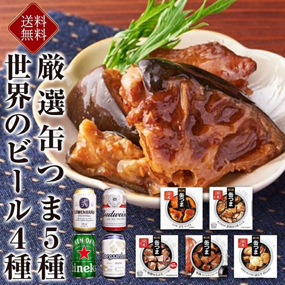 お歳暮 世界のビール4種 缶つま5種 ギフトセット 内祝い お返し 贈り物 飲み比べ プレゼント 晩酌 海外 ビール 高級 おつまみ 缶詰 詰め合わせ バドワイザー ヒューガルデンホワイト レーベンブロイ ハイネケン