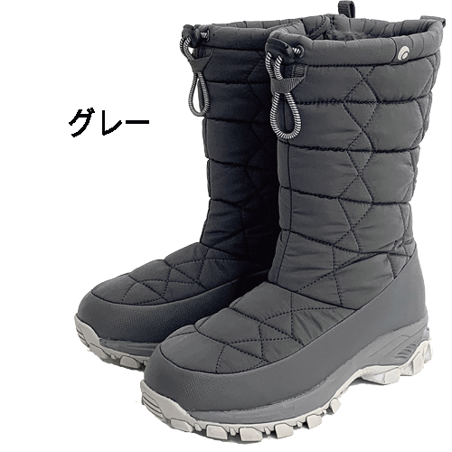 女性向けのセミロングタイプウィンターブーツ。 シンプルなキルティングスタイルのアッパーは、撥水・防汚加工が施され、サイドジッパー式なので脱ぎ履きが簡単。 上部のドローコードは絞る事ができるので、履き口を足にフィットさせて雪や冷たい冷気をシャットダウン。 さらにソールは特殊な防滑ソール(Ice Brake Sole)を採用し、凍った路面でのグリップ性能がアップ。 内部は全面がボア貼りなので、あたたかく保温性もありソフトな履き心地。 【カラー】ブラック、グレー ※色味が写真と若干異なる場合がございます。 【サイズ】22.5〜23CM、23.5〜24CM、24.5〜25CM 【素材】アッパー : 合成繊維(ポリエステル)+合成皮革(PVC) ソール : 合成樹脂(EVA)+合成ゴム(TPR) 【 当店の取り扱い商品 】 フィットネス・トレーニング用品 スポーツウェア トレッキング用品 健康磁気アクセサリ サポーター サッカー用品 卓球台 レクレーション・軽スポーツ スイム・サーフ スキー・スノーボード