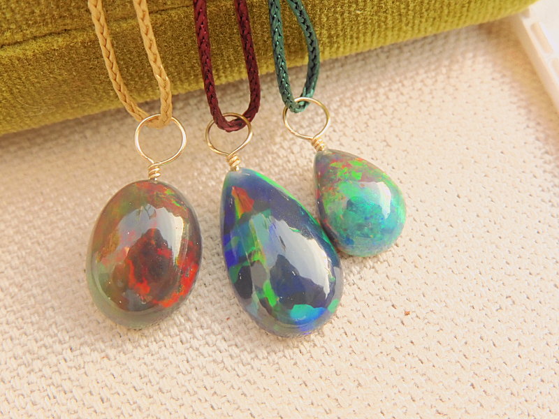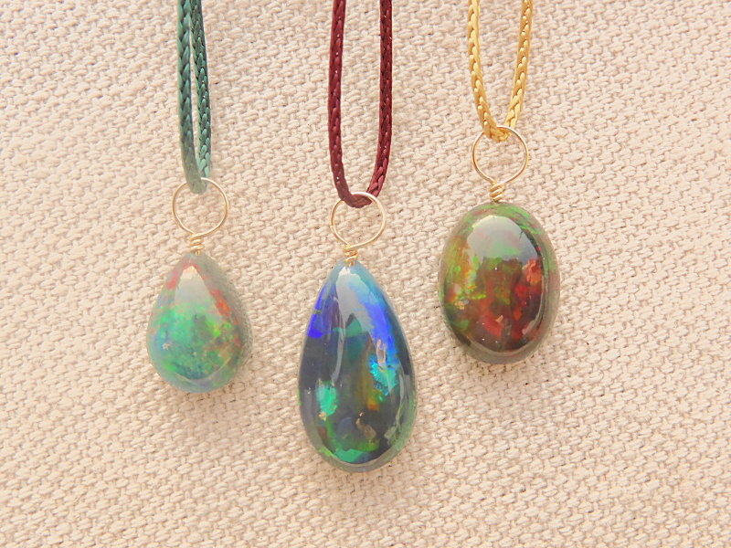 高品質 アフリカ産ブラック系オパール 厳選遊色 10KGFチャーム加工付【ぎらぎら遊色】1.19ct~4.03ct