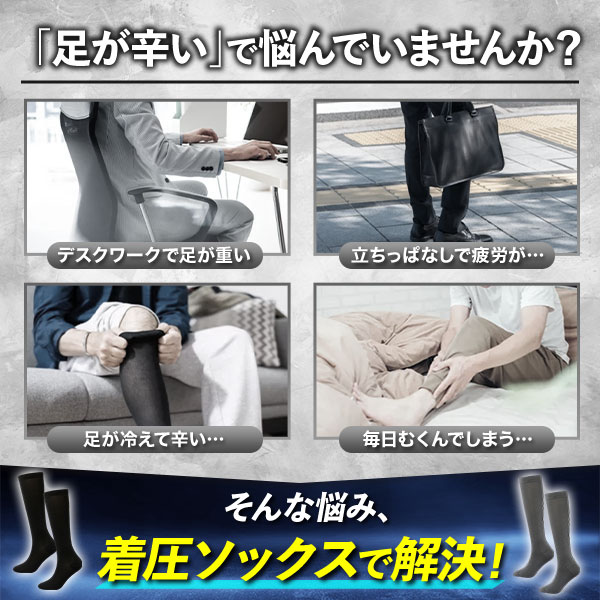 着圧ソックス【2足セット】メンズ 男性 弾性ストッキング 弾性ソックス 夜用 大きいサイズ 立ち仕事 デスクワーク ふくらはぎ 下肢静脈瘤 男性用 女性用 レディース ひざ下 おしゃれ 静脈瘤 むくみ サポーター 靴下 ソフト 介護 寝るとき ゆるめ 飛行機 送料無料 加圧ソックス 2足組 つま先なし 足首 履く 高齢者 シニア かわいい 女性 妊娠 妊婦 妊娠中 産後 マタニティ ベージュ 美脚 夏 夏用 口 ゆったり ロング 加圧 強圧 就寝 【商品説明】■段階着圧でむくみスッキリ足首に行くほど圧を強くしサポート■ちょうど良い履き心地強すぎない締めつけ感でいつでも快適■通気性が良くムレにくいふくらはぎタイプで長時間履いても蒸れずに◎【商品詳細】●数量2足セット●サイズ靴サイズ25〜28cm 長さ37cm●素材スパンデックス+ナイロン●カラーブラック2足グレー2足ミックス2足本製品は、医療用 メディキュット メンズ 医療 医療機器 スリムウォーク とは別商品となります。 2
