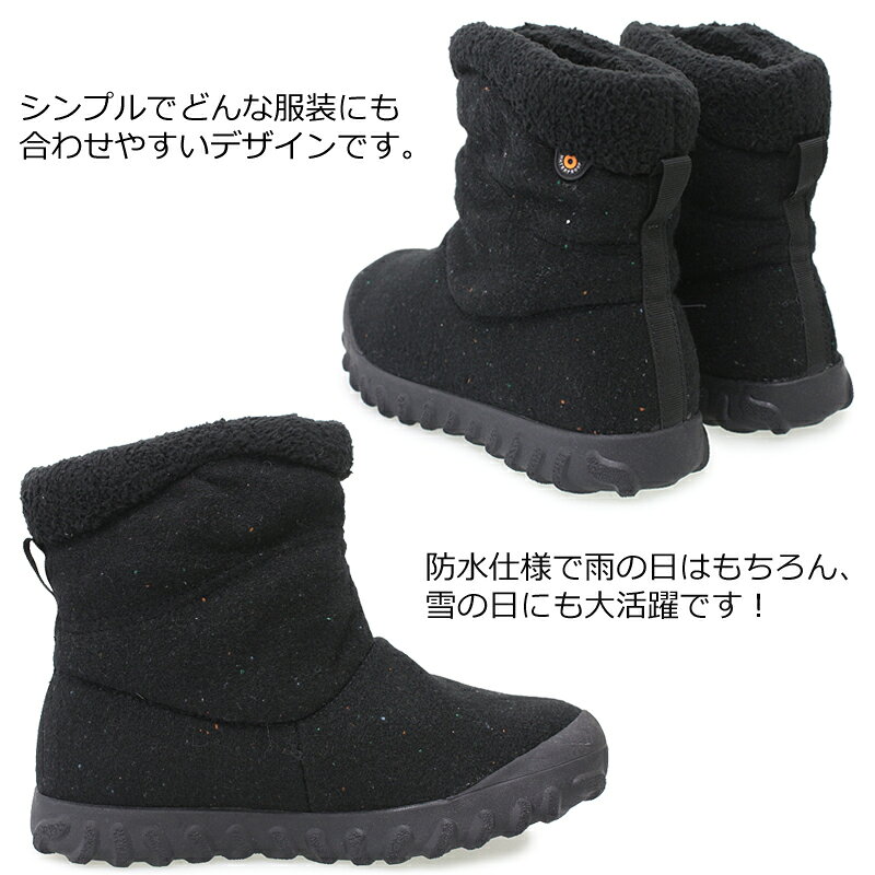 BOGS ボグス B-moc2 ショートブーツ レディース カジュアル 防水 保温性 耐久性 防滑 滑りにくい 雪寒地 スノーブーツ ウィンターブーツ 雪の日 ボア ブラック/チャコール Bモック2 72699