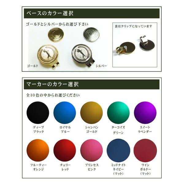 名入れマーカー コンペ ラウンド用品 彫刻 プレゼント ギフト 贈り物 父の日 母の日 敬老の日 お誕生日 記念日 クリスマス バレンタイン 記念品 世界にひとつ【名入れ ゴルフマーカー】製作します! 一緒にプレーする人と被ることがない自分だけの完全オリジナルマーカー キャップに挟んでラウンドすれば気分もグッとあがりスコアアップもめざせそう~ マーカーベースは日光や雨などに強いメッキ加工。磁石でくっつく仕様になっています。 マーカープレートは安心の日本製! ベース2種類・デザイン12種類・プレートカラー10色からお好みでご選択ください。 彫刻するので雨が降っても剥がれたり消えたりすることなく年齢問わず長くお使いいただけます。 日本製ならではの綺麗な発色で仕上がりもとても綺麗ですョ。 オリジナル感溢れる名入れゴルフマーカーはコンペ商品などにも最適です♪ 世界にたったひとつのゴルフマーカーをゴルフ好きな方へのプレゼントに! M-styleスタッフ心を込めて製作させていただきます。 ・素材 ベース:メッキ プレート:アルミ ・マーカー:直径22×厚さ2(mm) ・重さ:20g 英語書体ご指定の場合は英字にてご記入をお願いします。 ※彫刻文字を記入する際楽天の仕様上【20文字以内】と記入がございますが 一列の彫刻文字数は10文字程度までとなります。 ※漢字の場合は8文字程度まで。 ※一列文字デザインをご選択で文字数が多い場合は 当店にて二列文字デザインにご変更させていただく場合がございます。 ※二列文字デザインご選択で二列めが記念日の場合はセンター合わせにて製作となります。 ※記念日やお名前の間などに入る【 .ドット】は全て【 , カンマ】にて製作しております。 【 .ドット】での製作をご希望の方は【 .ドット希望】と必ずご記入ください。 ※英語書体「Helvetica 」「Arp」以外の書体は頭文字のみ大文字にて製作となります。 ※書体についてご指定ない場合とご返信がない場合 英語書体につきましては【Ver書体】にて製作します。 日本語書体につきましてはお名前の文字によって当店にてご選択させていただきます。 あらかじめご了承くださいませ。 ※ラッピングの仕様は予告なく変更する場合がございます。 ※データ確認・画像の送信はお受けしておりません。 名入れマーカー コンペ ラウンド小物 彫刻 贈り物 父の日 母の日 敬老の日 お誕生日 記念日 クリスマス バレンタイン プレゼント ギフト 記念品 世界にひとつ 高級感のあるゴールドマーカーもご用意しております