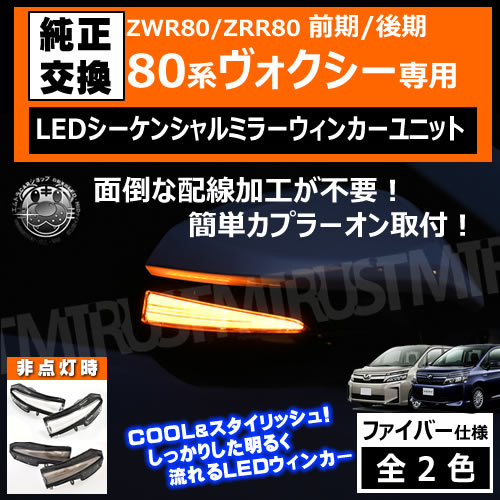 80系 ヴォクシー VOXY ZWR80 ZRR80 前期 後期 対応 LED シーケンシャル ドアミラー ウィンカーユニット 左右セット クリア ダークスモーク オリジナル 取付説明書付 スポーティ カスタム ファイバールック ファイバー調 流れる カプラーオン 簡単取付【エムトラ】