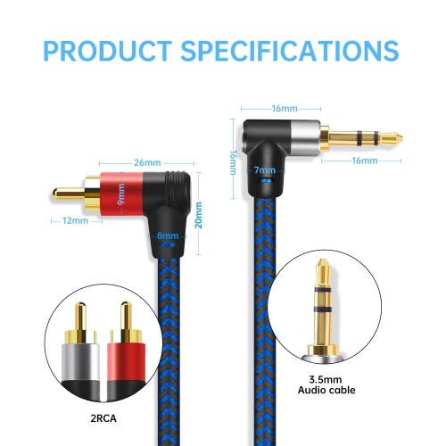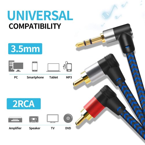 3.5 mmの2RCAケーブル5M、LDKCOK 3.5 mmの男性に2 RCAオスステレオオーディオアダプタ同軸ケーブル純正コットン編み
