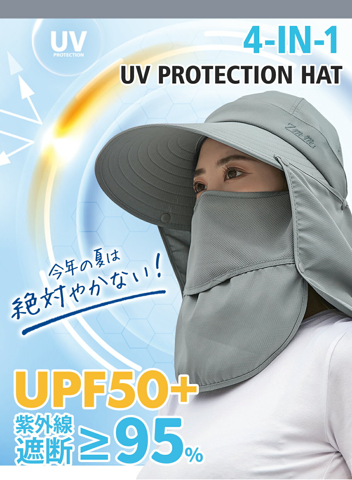 \クーポン利用で最安952円/楽天1位 キャップ サンバイザー レディース UPF50+ UVカット 日焼け防止 紫外線対策 グッズ 春 夏 秋 日よけ 帽子 農作業 フェイスカバー ネックカバー 4way 折りたたみ 収納 ボタン取り外し 顎紐 つば広 スポーツ あご紐付き 折りたたみ 涼しい