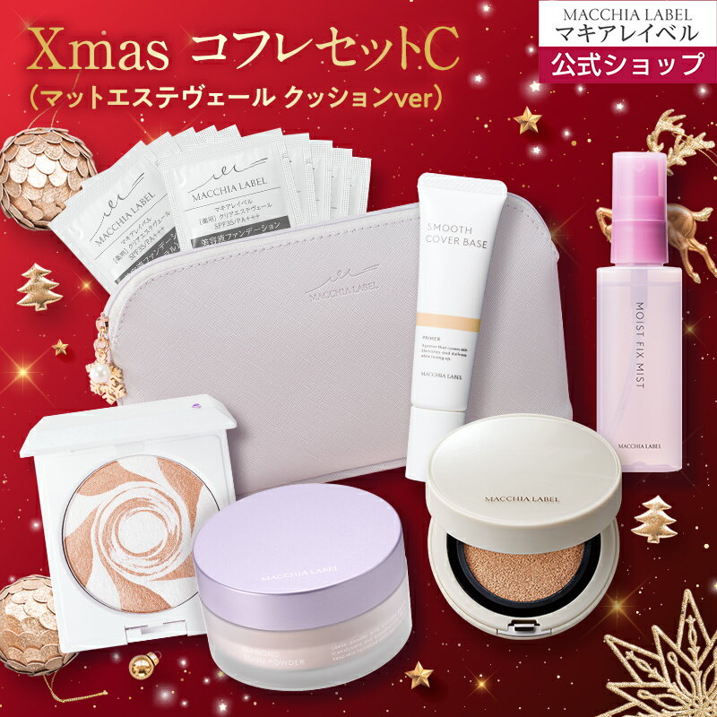 11/1発売【楽天限定】25 XmasコフレセットC ●セット内容============================ ・【選べるファンデーション】:薬用クリアエスヴェール13mL 1本 または マットエステヴェール クッション ファンデーション(ケース・パフ付) 1個 ・【ルースパウダー】:ダイヤモンドビジュパウダー 12g(パフ付)1個 ・【下地】:スムースカバーベースb 1個 ・【ハイライト】:ダイヤモンドビジュライトa 1個 ・【メイクキープミスト】:モイストフィックスミスト 1本 ・【ポーチ】:コフレポーチ 1個 ※ご購入いただいたファンデーションと同じ色のサンプルをプレゼント。 ================================== 【薬用クリアエステヴェールVer.】 商品合計19,914円⇒【35%OFF】特別セット価格12,900円 【クッションファンデーションVer.】 商品合計23,181円⇒【35%OFF】特別セット価格15,000円 ================================== 【美容液ファンデ】薬用クリアエスヴェール13mL 医薬部外品 2,698円 販売名:マキアレイベルLFc(BE,OC,LB,PB,BB) ・ファンデーションの色をお選びいただけます。 ※全成分の確認はこちらから 【クッションファンデ】マットエステヴェール クッション ファンデーション(ケース・パフ付き)5,965円 ・ファンデーションの色をお選びいただけます。 ※全成分の確認はこちらから 【ルースパウダー】ダイヤモンドビジュパウダー12g(パフ付)6,645円 ※全成分の確認はこちらから 【下地】スムースカバーベースb 3,926円 ※全成分の確認はこちらから 【ハイライト】ダイヤモンドビジュライトa 4,445円 ※全成分の確認はこちらから 【メイクキープミスト】モイストフィックスミスト 2,200円 ※全成分の確認はこちらから 【ポーチ】コフレポーチ 【サンプル】薬用クリアエステヴェールラミサンプル (リニューアル前商品のため、ファンデーションの色名が異なります。ご了承ください。)
