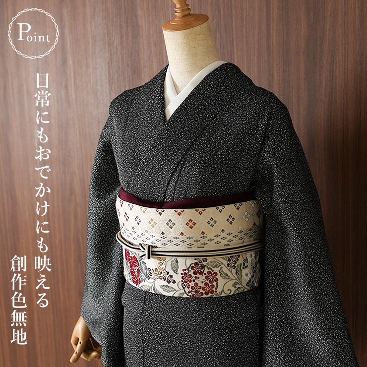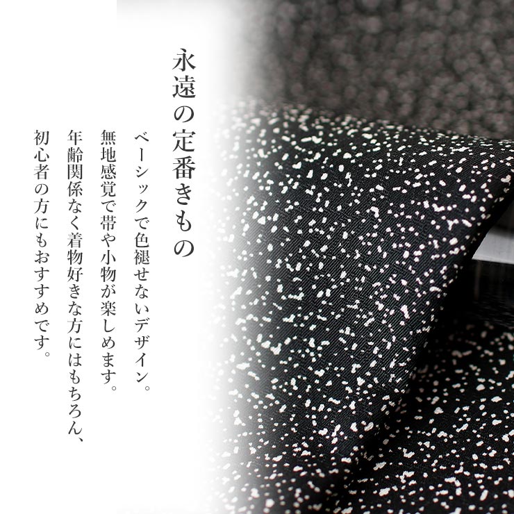 \BLACK FRIDAY開催中/[洗える着物] 東レシルック 袷 創作色無地 きもの たたき染め調 吹雪 ブラック 日本製 創世舎 定番 黒色 モノトーン 無地感 広衿 粋 カジュアル 和装 女性 レディース 仕立て上がり プレタ ポリエステル おしゃれ かわいい 春 秋 冬 (ym511)