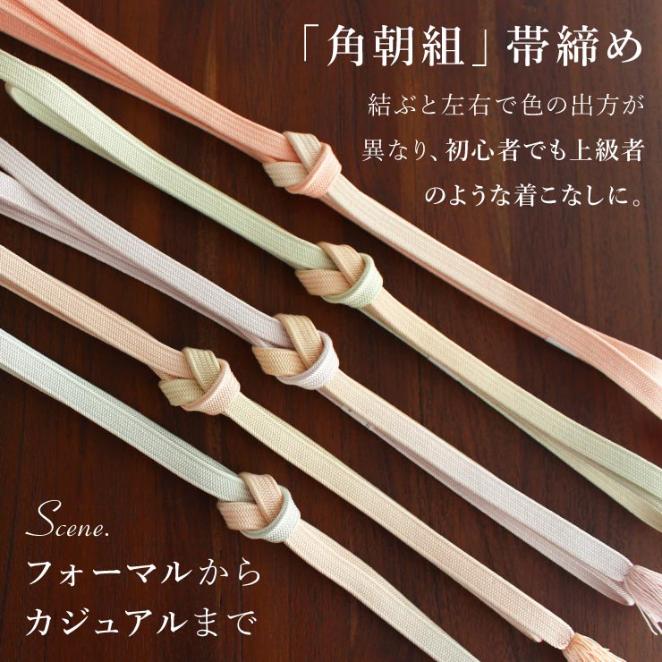 [ 日本製 ] 正絹帯締め 角朝組 帯締め 淡色 5色 平組 帯〆 おびじめ フォーマル カジュアル 絹100% 正絹 シルク 春 秋 冬 無地 シンプル グラデーション ぼかし染め 撚房 パステルカラー クリーム レディース 婦人 女性 着付け小物 着物 きもの(mo102)