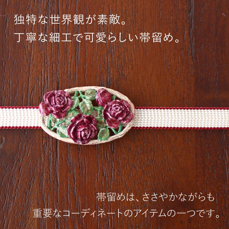 \WeekendSale開催中!/[独特の世界観が魅力] 薔薇 帯留め 日本製 帯どめ おびどめ バラ ばら 花 植物 ローズ 花柄 赤 ワイン ワインレッド シック 上品 かわいい 個性的 贈り物 プレゼント 和装小物 和小物 着物 きもの