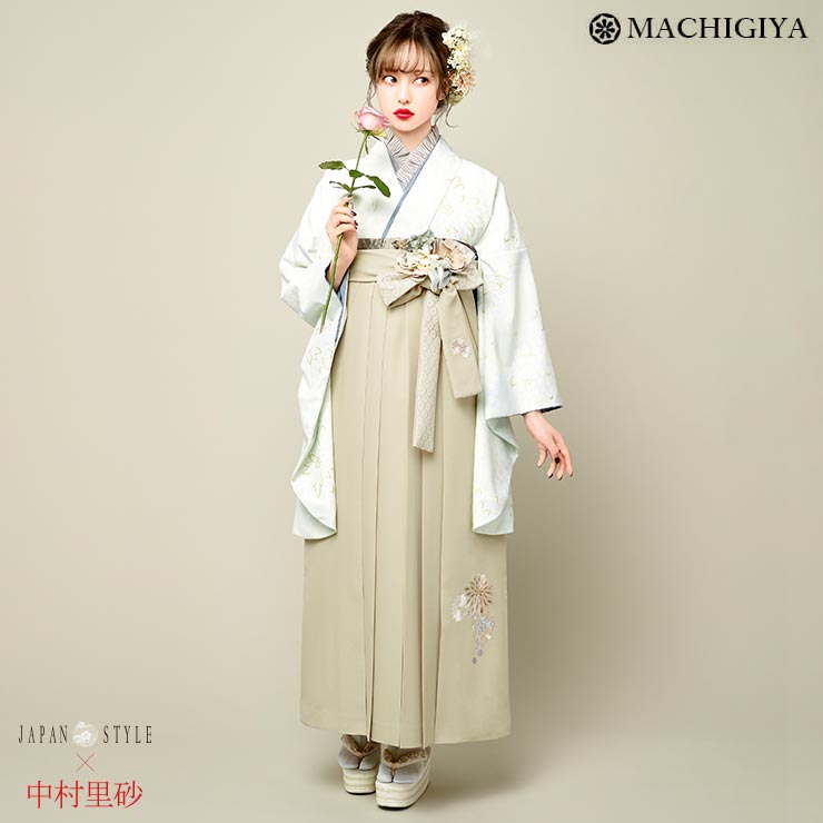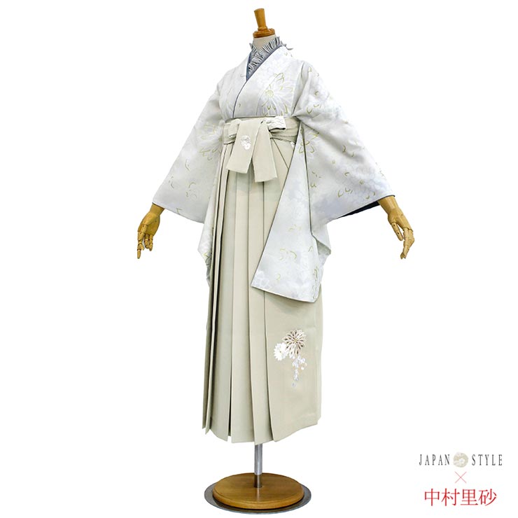 【 レンタル 】大学 卒業式 袴セット 淡菊 薄グレー 白 ベージュ M L サイズ モダン レトロ JAPAN STYLE×中村里砂 袴 フルセット 着物 古典 フラワー 花 上品 和服 大卒袴 卒業 服装 先生 教員 保護者 母 大人 入学式 貸衣裳 ホワイト 往復送料無料【K-330/H-129】(ma510)
