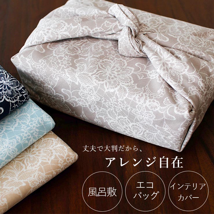 \BLACK FRIDAY開催中/日本製 [145×145cm] 大判 風呂敷「フラワーレース」綿100% コットン 花柄 レース柄 エコバッグ アレンジ あずま袋 グレー ベージュ グレージュ ライトブルー ネイビー 水色 紺色 青色 濃 淡 着物 浴衣 布 小物 プレゼント ギフト 贈り物 (ym307s)