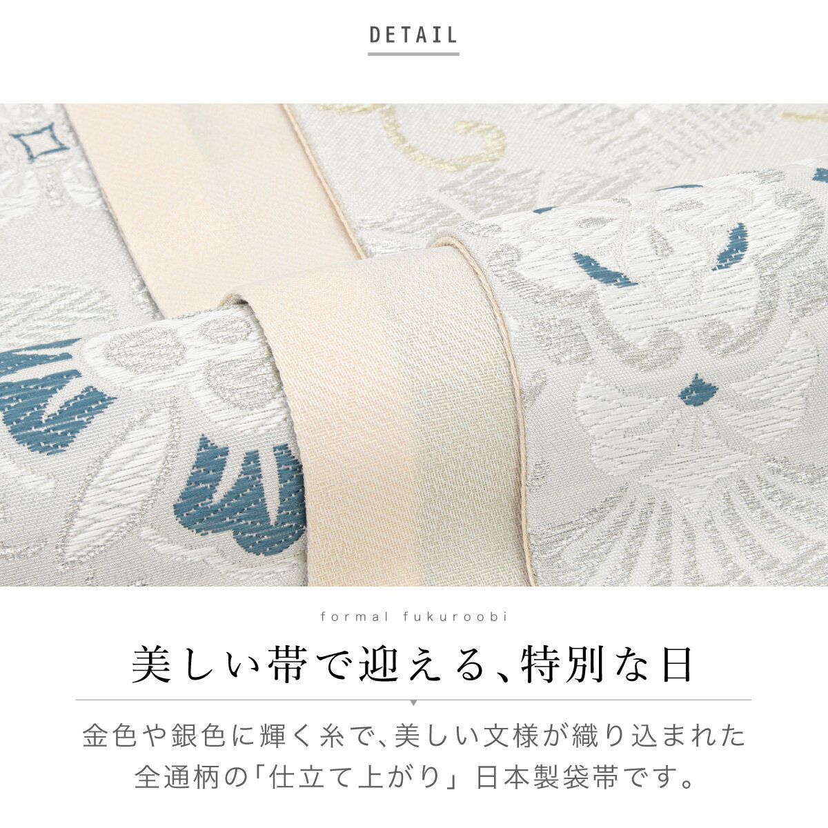 決算大感謝祭|最大15%OFFクーポン配布中|2/15~28まで 袋帯 単品 訪問着 礼装 正装 全通柄 小杉織物 ホワイト ベージュ ゴールド シルバー 白 金 銀 リーフ 菱 稜花 唐花 ポピー 更紗 30代 40代 50代 仕立て上がり 日本製 送料無料