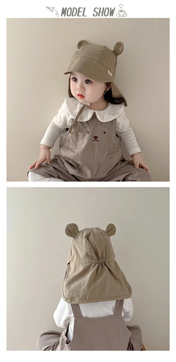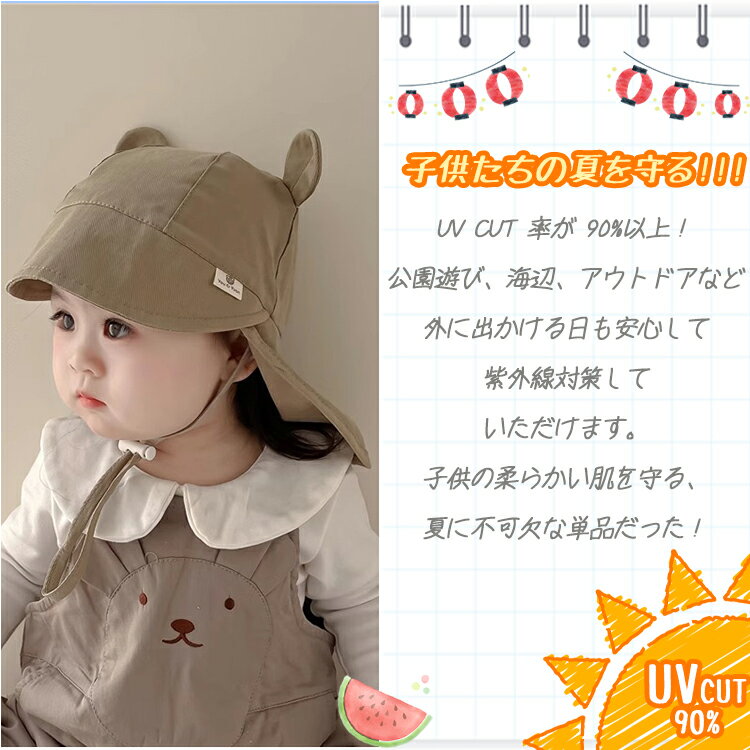 ベビー 帽子 キッズ 夏 日除け 子供 UVカット ハット ベビー 帽子 サンハット 夏用 バケットハット タレ付きジュニア 女の子男の子 可愛い クマ耳 羊の角 つば広 あご紐付き 子供用 通気性 速乾 小学生 保育園 海 川 山 公園 紫外線対策 ブラウン カーキ ベージュ 46-49cm