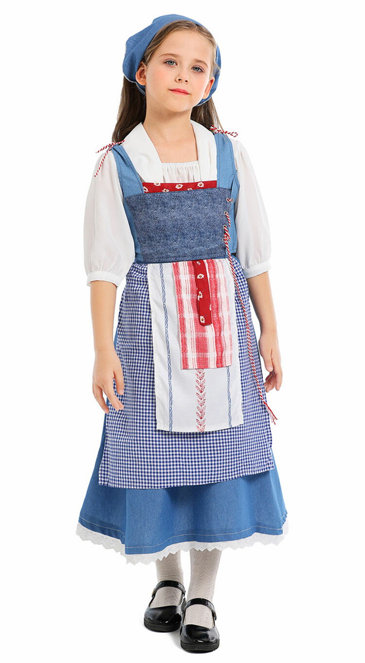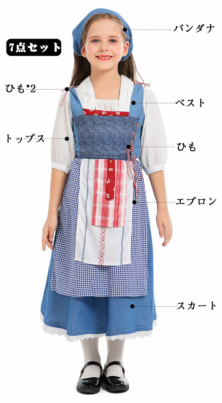 コスプレ 衣装 ハロウィン コスプレ 仮装 田舎 農場 メイド服民族衣装 パーティー イベント コスチュームハロウィン可愛い キッズ 小学生 ガール コスプレ 子供 7点セット ワンピース 子供 バンダナ ベスト トップス イベント用品 誕生日 舞台劇 文化祭 発表会 Halloween