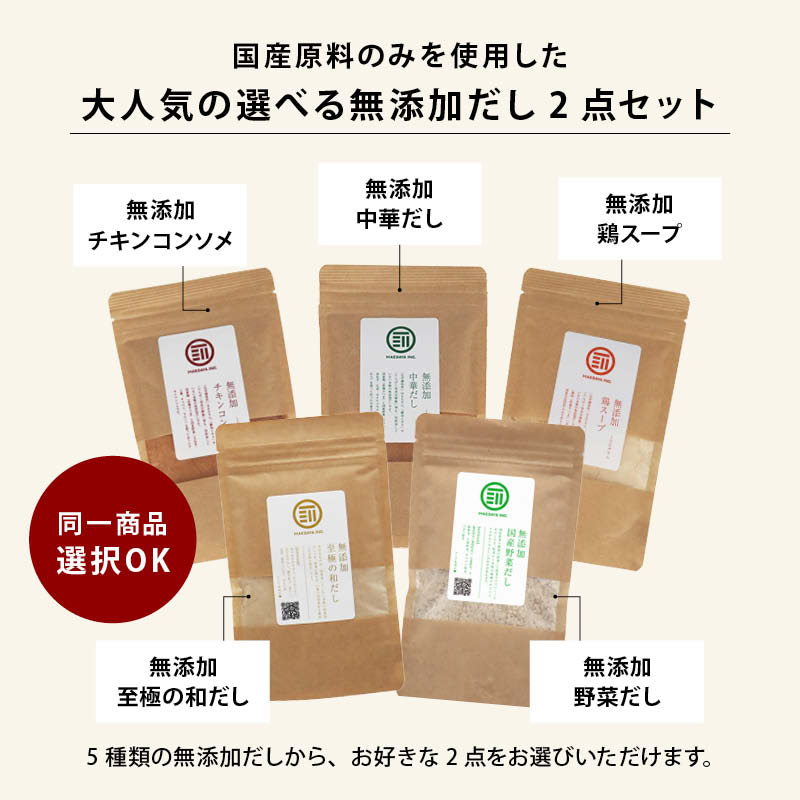 【セール限定 15%OFFクーポン有】前田家 人気の国産 無添加だし 選べる 2点セット 100g×2袋 チキンコンソメ 中華だし 鶏スープ 野菜だし 至極の和だし 粉末タイプ 出汁 料理 離乳食 無塩 化学調味料不使用 お得 送料無料 敬老の日 MAEDAYA