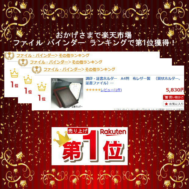 商品名 調印・証書ホルダー A4判用 布レザー製 (賞状ホルダー、証書ファイル、免状ホルダー、重要書類保管) 品番 F-244 サイズ 外寸:311×225×厚さ18mm 証書収納サイズ:297×210mm A4判(JIS規格サイズ) ※手書きなどの賞状の場合A4判と表示されていても、サイズが違う場合がございます。必ずご確認下さい。 材質 布レザー製 仕様 四隅差込み式、A4サイズ2枚収納可能、化粧箱入り メーカー コレクト株式会社 ※表紙に名前入れ、文字入れできます。 別途料金がかかります。版代11,000円+印刷代5,000円から。 納期は校了後2〜3週間程度かかります。 お見積もりいたしますので、内容、数量等ご連絡ください。 ※他のモール及び店頭売りと在庫を併用しておりますのでご注文後でも在庫切れの場合が ございますのであらかじめご了承下さい。 【関連商品】 調印・証書ホルダー A4判 細布製 (賞状ホルダー、証書ファイル) 販売価格 4,305円 (税込) 調印・証書ホルダー A4判 布レザー製 (賞状ホルダー、証書ファイル) 販売価格 5,565円 (税込) 調印・証書ホルダー A4判 別珍製 (賞状ホルダー、証書ファイル) 販売価格 5,775円 (税込) 調印・証書ホルダー A4判 本革製 (賞状ホルダー、証書ファイル) 販売価格 12,600円 (税込) 調印・証書ホルダー A3判 細布製 (賞状ホルダー、証書ファイル) 販売価格 9,450円 (税込) 調印・証書ホルダー用 房つきストラップ A4判用 販売価格 630円 (税込) 調印・証書ホルダー用 二つ折りポケット A4判用 販売価格 525円 (税込) ランスロット8 複合筆記具 販売価格 7,560円 (税込) パイロット ツープラスワン エボルト (複合筆記具 ボールペン黒+赤+シャープ) 販売価格 1,050円 (税込) 調印・表彰式に最適!高級感あふれる布レザー製証書ホルダー 「大切な賞状や契約書を、儀式にふさわしい風格と高級感のあるファイルで保管したい」 このコレクト 調印 証書ホルダー A4判は、貴重書類の閲覧・携帯・保管に最適で、 調印式・表彰式などの催事を演出する布レザー製の高級感がある賞状ホルダーです。 【3つの魅力:格式と長期保存】 1. 式典にふさわしい高級感 布レザー製(フェイクレザー)の落ち着いた質感で、高級感があります。 調印式、表彰式、契約書の締結など、重要な催事での使用に最適です。 2. A4サイズ2枚収納可能な設計 四隅差込み式で、卒業証書、合格証、許可証など、大切なA4判(JIS規格)の証書を2枚収納可能です。 証書ファイルとして長期保管をサポートします。 3. 贈り物にも最適な仕様 化粧箱入りなので、卒業や合格のお祝いなど、贈り物としても最適です。 全4色から選べ、短納期対応が可能です。 【導入後の理想的な変化】 このホルダーを導入することで、あなたは**「大切な証書が折れたり、劣化したりする」という不安から解消されます。 調印式や表彰式の場では、布レザー製の風格が催事の重厚感を演出し、商談がスムーズに運びます。 A4サイズ2枚収納で、証書を美しく**、長期にわたって保管できるようになります。 【商品情報】 項目 詳細 商品名 調印・証書ホルダー A4判用 布レザー製 品番 F-244 メーカー コレクト株式会社 サイズ A4判(縦297×横210mm)収納可能 材質 布レザー製(フェイクレザー) 仕様 四隅差込み式、A4サイズ2枚収納可能、化粧箱入り、全4色 特徴 高級感、証書ファイル、調印式・表彰式などの催事を演出、短納期対応 オプション ※表紙に名前入れ、文字入れ可(別途料金・納期がかかります)