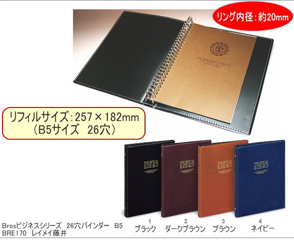 バインダーノート ルーズリーフ B5サイズ 合皮製 Brosビジネスシリーズ 26穴 BRE170