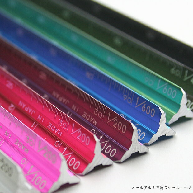 ポケットやペンケースに収納しやすいスリムデザイン 文字、目盛が見やすいレーザー精密加工の三角スケール オールアルミ製なので温度による伸縮が少なく高精度です。 目盛はレーザー精密加工で刻まれています。 ペンケースに収まる幅9mmのスリムタイプの定規 商品名 オールアルミ三角スケール ナノ 品番 27-0751 シルバー/ 27-0752 ブロンズ/ 27-0753 パープル/ 27-0754 グリーン/ 27-0755 レッド/ 27-0756 ブルー/ 27-0757 ピンク/ 27-0758 クリアブラック/ 27-0759 ホワイト サイズ 長170mm×9mm×9mm 重さ:約)10g 仕様 日本製 オールアルミ製 15cm目盛 縮尺目盛:1/100 1/200 1/300 1/400 1/500 1/600 メーカー タケダ ※他のモール及び店頭売りと在庫を併用しておりますのでご注文後でも在庫切れの場合がございますのであらかじめご了承下さい。
