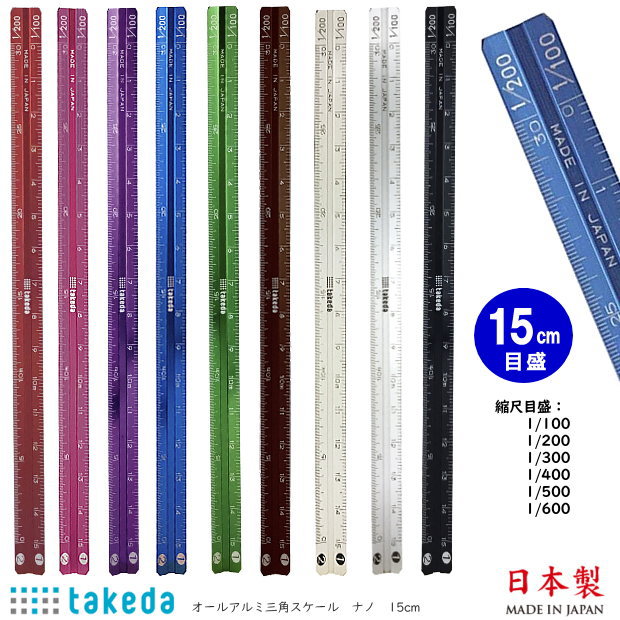 【楽天1位】アルミ三角スケール ナノ 15cm 定規 小さい 小型 タケダ おしゃれな三スケ 持ち運びに便利 見やすい タケダ