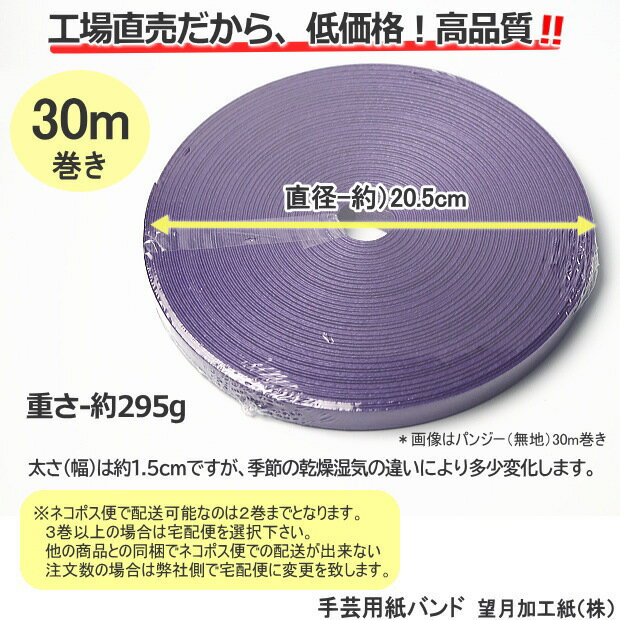 クラフトバンド(紙ばんど)は、紙で作られた帯状になっている製品です。 手芸用として扱いやすい硬さとなっております。軽くて丈夫な材質で、お買い物バッグや、日常使いのかご作りにオススメです! 幅約15mmの12本どりの束をお好みサイズで好きな本数に裂いて使用出ます。 いくつかの色をミックスしたコンボ柄は、無地の紙バンドの中に、途中でアクセントに1本編みこんでカゴを作ったり、 そのまま編み紐に使ったり。横に使えばボーダー柄。縦に使えばストライプ柄と手作りのバッグやかご、 雑貨、お人形、フラワー等の手芸にお使い頂けます。 商品名 手芸用 紙ばんど 30m巻き サイズ 約)長さ30m ※幅1.5cm 厚さ1.25mm ※季節の乾燥湿気の違いにより多少変化します。 仕様 紙製の平らなバンド /12本どり/日本製 メーカー 望月加工紙株式会社 ※他のモール及び店頭売りと在庫を併用しておりますのでご注文後でも在庫切れの場合がございますのであらかじめご了承下さい。 ペーパークラフト・紙バンド一覧はこちら 大きな収納かご レシピ 手芸紙バンド キット 収納バスケット レシピ紙バンドキット ミニバスケット 紙バンドキット 紙バンド 10m巻 ストライプ柄 紙バンド 10m巻 コンボ柄 紙バンド キットふたつきミニバスケット ボーダー柄が作れる!30m巻コンボ柄クラフトバンド 「大きなカゴバッグ作りや、複数の作品に個性的なコンビ柄のアクセントをたっぷり使いたい」 この望月加工紙 クラフトバンド 30m巻は、いくつかの色をミックスしたコンボ柄が魅力の、 軽くて丈夫な材質でできたカゴバッグ作りに最適な手芸用紙ばんどです。 【3つの魅力】 1. 30m巻の大容量と高品質 たっぷり使える30m巻で、大きなお買い物バッグや日常使いのかご作りにオススメです。 手芸用として扱いやすい硬さの国産の高品質な紙バンドです。 2. 自由自在な柄の表現 横に使えばボーダー柄、縦に使えばストライプ柄と、カラフルな柄を表現できます。 無地の紙バンドの中に、途中でアクセントに1本編みこんでカゴを作ることも可能です。 3. 安心の日本製コンビカラー 抹茶-赤、紺-白、こげ茶-赤といった魅力的なコンビ柄を展開。 静岡県富士市の工場直売品で、手作りのバッグやかごを美しく彩ります。 【この商品がおすすめな方】 30m巻の大容量で、大きなかごバッグ作りに挑戦したい方。 コンボ柄やボーダー柄を使って、作品に個性的なアクセントを加えたい方。 軽くて丈夫な紙バンドで、お買い物バッグなど実用品をハンドクラフト手芸したい方。 【商品情報】 項目 詳細 商品名 手芸用 紙ばんど 30m巻き メーカー 望月加工紙株式会社 長さ・幅 約)長さ30m / 幅約15mm(12本どり) 材質 紙製の平らなバンド(クラフトバンド) 特徴 コンボ柄、ボーダー柄、手芸用として扱いやすい硬さ、軽くて丈夫、日本製 カラー 抹茶-赤、紺-白、こげ茶-赤 他