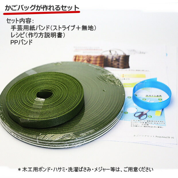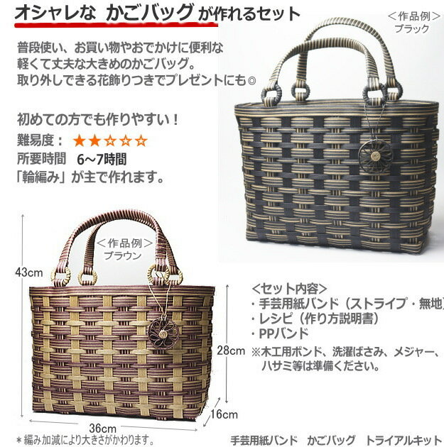 【楽天1位】かごバッグ 手作りキット 基本 クラフトバンド レシピ付きセット 簡単 手芸用紙バンド 大人おしゃれなかご作れるセット 大きいかごバッグ 人気 ハンドメイド トライアルキット ストライプ 黒 緑 茶 こげ茶 ベージュ プレゼント お買い物籠 持ち手付バスケット
