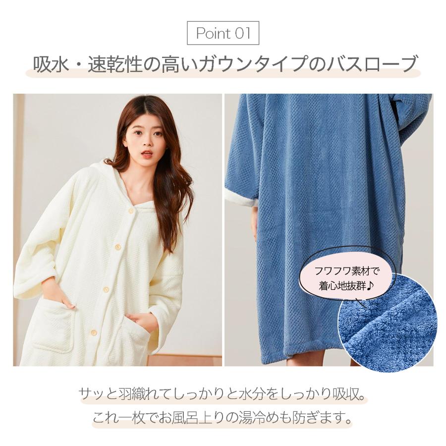 バスローブ レディース タオル地 ワンピース 薄手 着るバスタオル 着るタオル タオルワンピース ママ ガウン 速乾 ボタン マイクロファイバー バスローブタオル