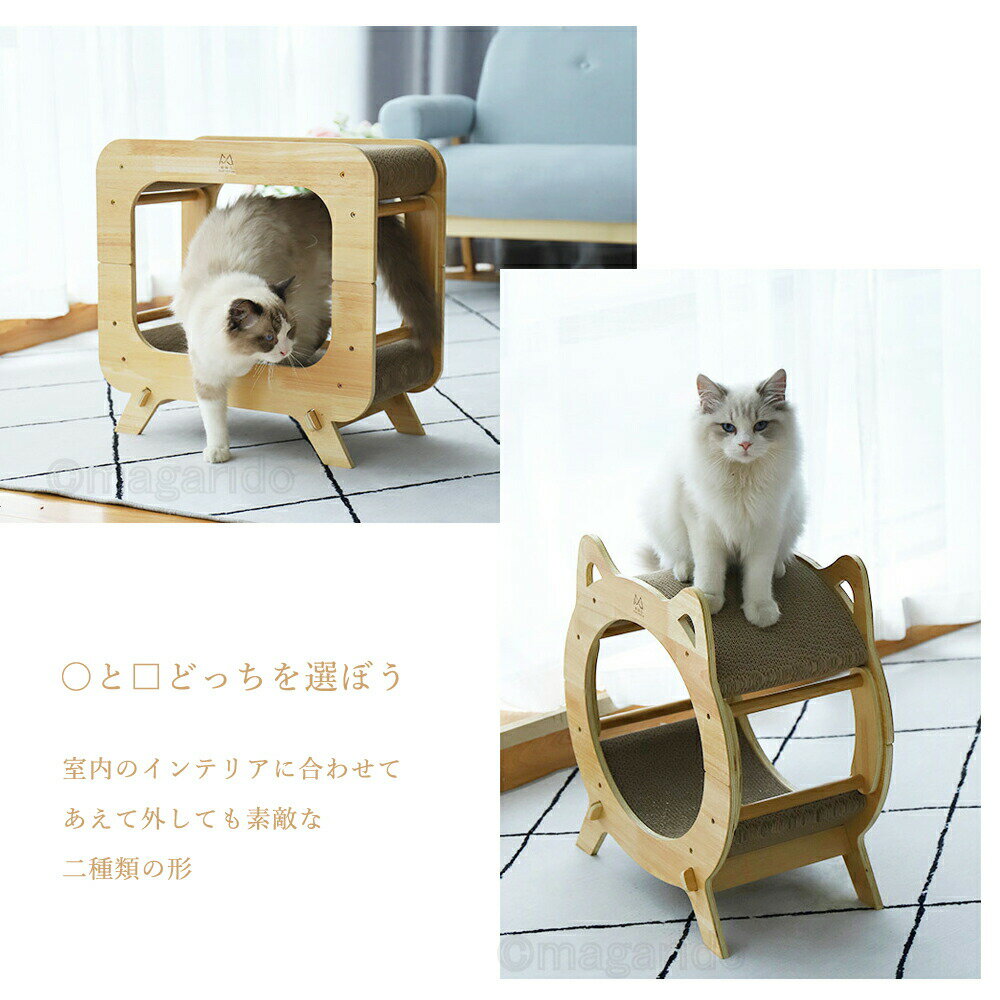 まがり堂 木製 2段爪とぎまるしかくハウス ベッド (交換用 替え ダンボールも販売) ◇ 送料無料 猫 ねこ キャット ペット おすすめ 人気 可愛い かわいい おしゃれ プレゼント 段ボール 爪研ぎ つめとぎ つめ研ぎ つめ磨き 爪磨き つめみがき キャットハウス
