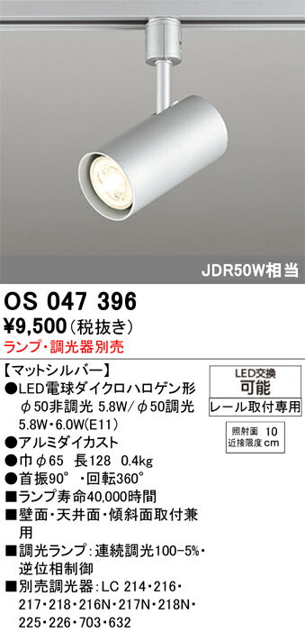 オーデリック OS047396 スポットライト ダクトレール 用・ プラグタイプ LED 調光 ダイクロハロゲン形6.3W 連続調光 ランプ・調光器別売 レール取付専用 マットシルバー