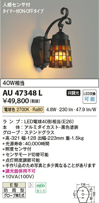 コイズミ照明 AU47348L ポーチライト LEDランプ交換可能型 人感センサ タイマー付ON-OFF 電球色 防雨型