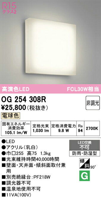オーデリック OG254308R バスルームライト 非調光 LED一体型 電球色防雨・防湿型