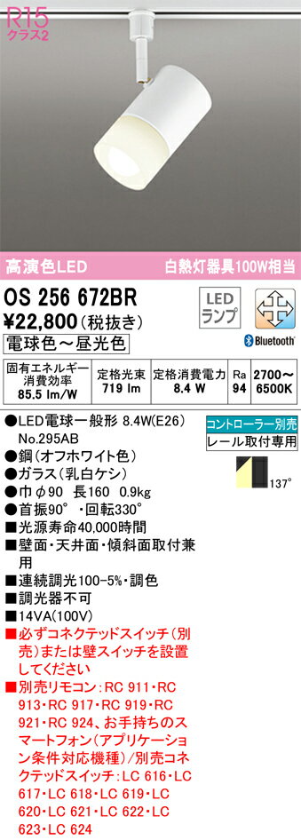 オーデリック OS256672BR(ランプ別梱) スポットライト 調光 調色 Bluetooth コントローラー別売 LEDランプ 電球色~昼光色 プラグタイプ オフホワイト