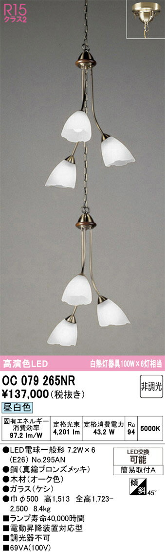 オーデリック OC079265NR(ランプ別梱) シャンデリア 非調光 LEDランプ 昼白色