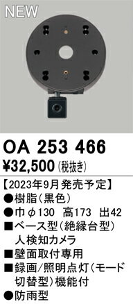 オーデリック OA253466 センサ ベース型人検知カメラ 壁面取付専用 防雨型 黒色