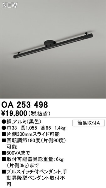 オーデリック OA253498 スポットライト 部材 ライティングダクトレール L1000 黒色 [£]