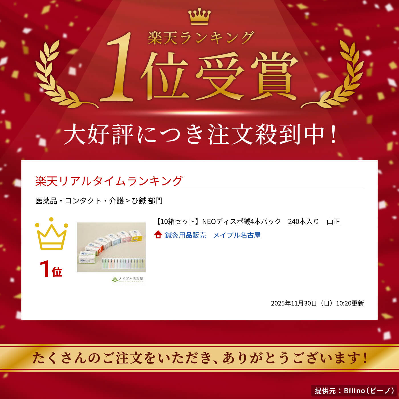 【選べる10箱セット】NEOディスポ鍼4本パック 240本入り 金属鍼柄のディスポ鍼。ストレート鍼管1本と鍼4本をパックした使い勝手の良い商品。 鍼管は完全国内生産 鍼管を番手により色分け。 6色カラー鍼管でサイズがわかりやすくなります。 特徴 鍼体は国産材料を使用。 鍼先はスムーズな刺入をたすける松葉型。 鍼管の先端は丸みを帯びたR形状で、肌へのあたりがやさしい。 ストレートタイプ鍼管。 鍼管内径が細く、的が定めやすくなります。 サイズ表記の点字付きパッケージ 視覚に不安のある方にも配慮された設計です。 この鍼は医家向けの鍼です。 医師もしくは鍼灸師資格を保有されていない方には販売できません。 製造販売元:(株)山正 広告文責:(株)メイプル名古屋 052-883-8566