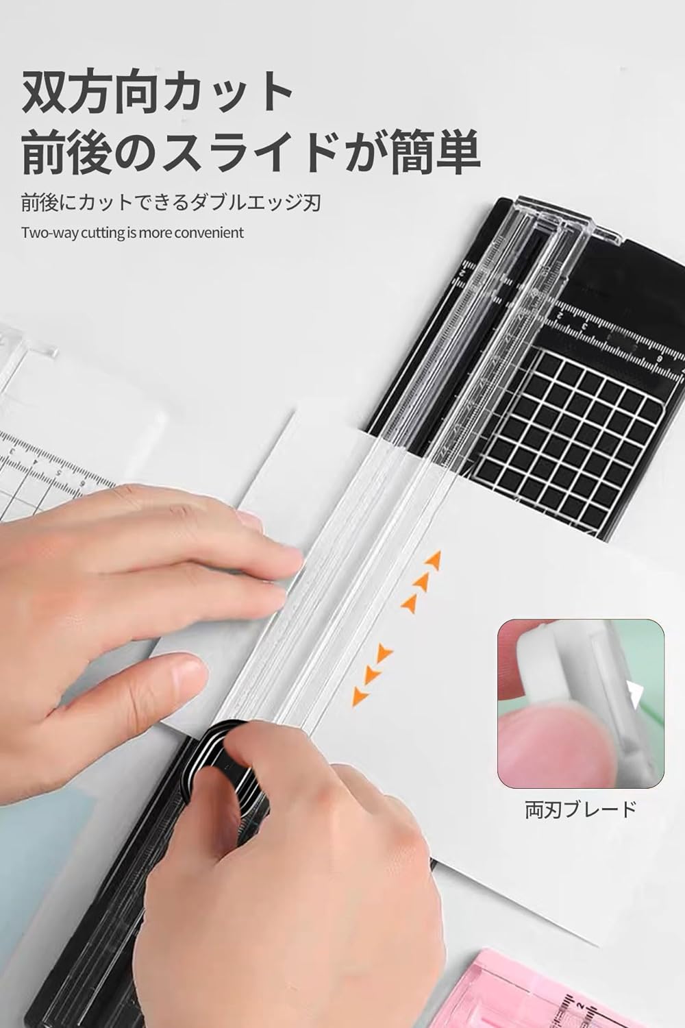 【6%OFFクーポン】ペーパーカッター 2個替え刃付き ペーパー裁断機 ペーパーカッター 小型 軽量 使いやすい A4サイズ対応 軽量 ミニ裁断機 おしゃれ スライドカッター カード裁断 定規をつける 多機能 コーピー用紙 厚紙 表紙 家庭用 業務用