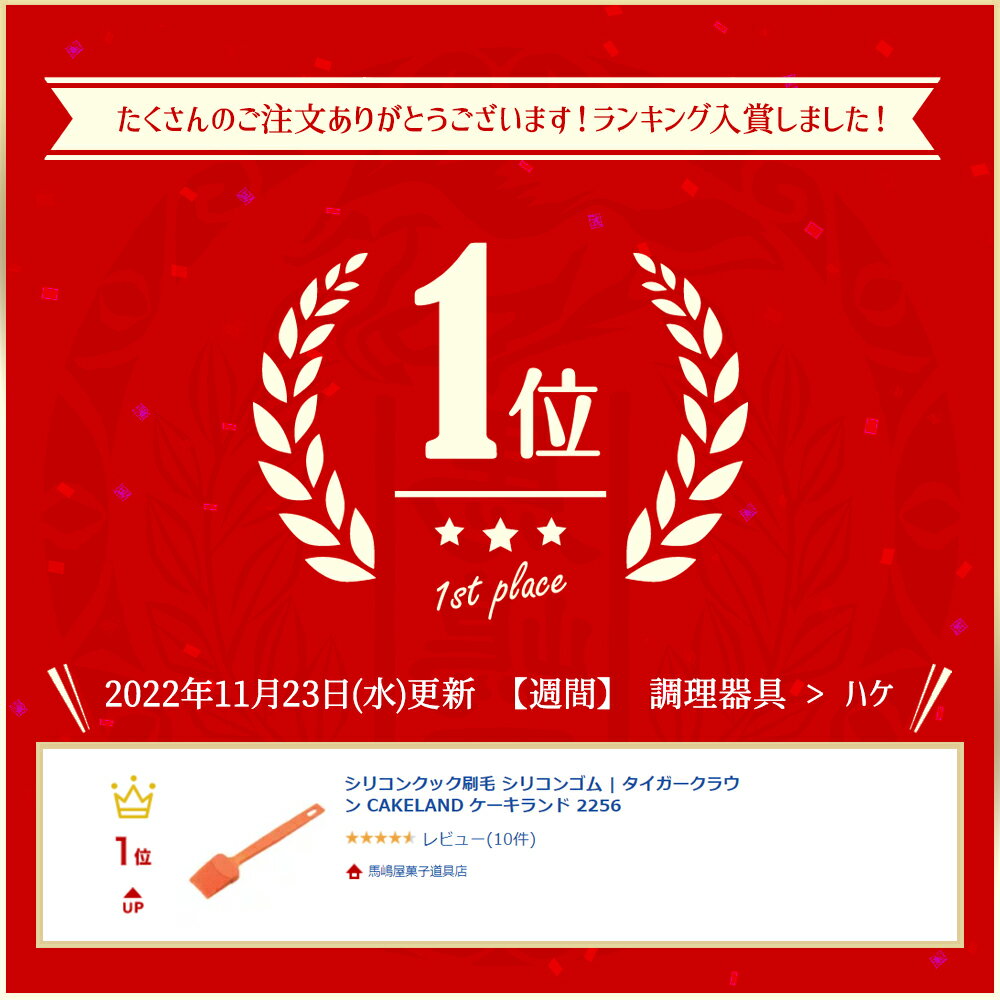 主な仕様 {この道具を使用したレシピ} 基本のドッグパン とろーりチーズのカレードッグ {ご購入前のご注意} ※食器洗い乾燥機(食洗機)には対応していません。 {商品仕様} 材質:[刷毛]シリコンゴム、[ハンドル]ABS樹脂 サイズ(約):[全体]44×13×218mm、[刷毛]44×13×58mm、[ハンドル]19×8×160mm 耐熱温度(約):[刷毛]-20〜200度、[ハンドル]-20〜80度 製造国:日本 {関連検索キーワード} ハケ はけ ブラシ シリコン刷毛 タイガークラウン CAKELAND ケーキランド 2256 馬嶋屋菓子道具店 かっぱ橋 バレンタイン ハロウィン クリスマス 誕生日 パティシエ パン屋さん お菓子屋さん 洋菓子屋さん パン教室 お菓子教室 パン作り お菓子作り お菓子道具 業務用 家庭用 メーカー希望小売価格はメーカーサイトに基づいて掲載しています