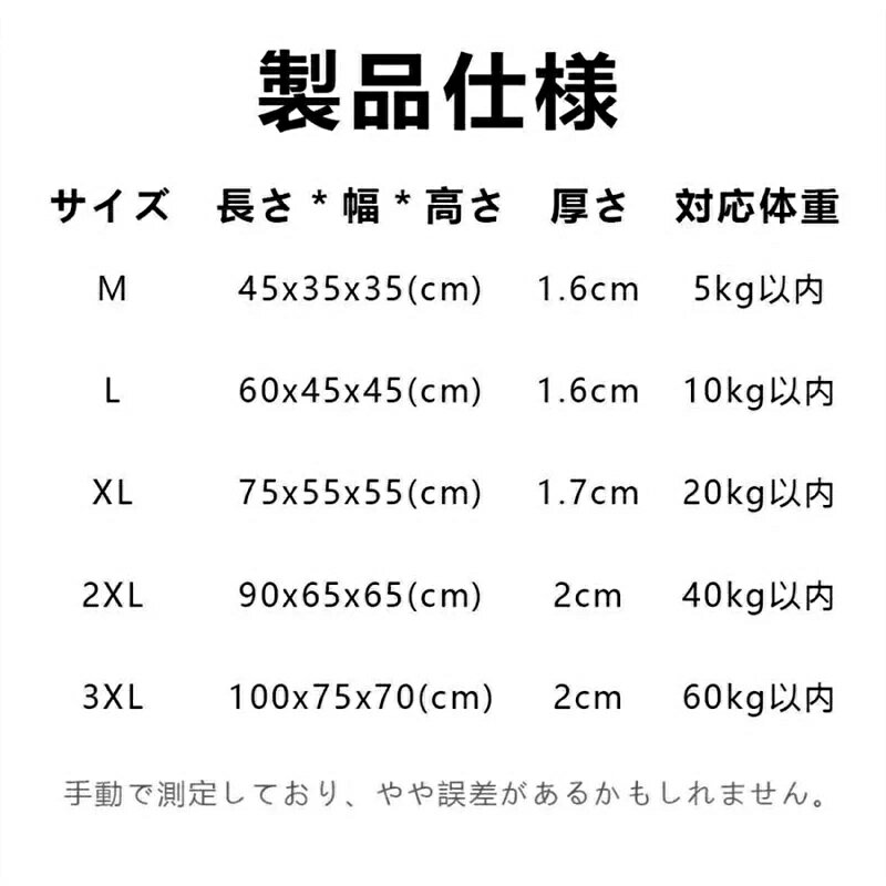 サイズ: M(長さ45cm 幅35cm 高さ35cm) L(長さ60cm 幅45cm 高さ45cm) XL(長さ75cm 幅55cm 高さ55cm) XXL(長さ92cm 幅65cm 高さ65cm) XXXL(長さ105cm 幅75cm 高さ70cm) 表地:合成繊維+フランネル 中材:PP綿 裏面:オックスフォード布とすべり止め付け ドーム型の中にマットを置いてハウス型での使用と、天井を潰してその上にマットを置くベッド型の2通りの使い方ができます。ふわふわで柔らかい十分なあんしん感を感じられるペットハウスです。 ベッドの中はクッション性優れた3D立体pp綿で十分充填されておりますので、柔らかくてふわふわして、ペットに最高な寝心地を提供できる猫ペットベッド。ペットの冬用ベッドとして最適です。人間と同じ睡眠はペットにとっても重要なこと、高品質なペットベッドでより良い睡眠品質を提供致します。