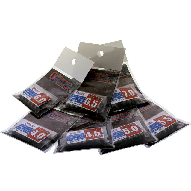 商品の詳細データ メーカー名 Garage Bolster 商品名 ルアーメイキングウェイト タングステンボール 材質 YG6 タングステンカーバイド 形状 球形(真球ではありません) 公差0.3mm〜0.4mm 用途 ハンドメイドルアー製作時のウェイト スピーカー、模型などのオモリ サイズ一覧 直径 表示重量 入数 3.5mm 0.304g 24個 4.0mm 0.61g 22個 4.5mm 0.85g 20個 5.0mm 1.14g 19個 5.5mm 1.67g 16個 6.0mm 2.04g 14個 6.5mm 2.37g 12個 7.0mm 2.86g 10個 商品解説 近年、鉛に替わるシンカー素材としてすっかり一般化してきたレアメタル「タングステン」を基にしたタングステンカーバイド(炭化タングステン)は、比重15以上という超重合金です。鉛の比重が11.3であるのと比較しても、その重さが分かると思います。 ルアーメイキングウェイト・タングステンボールは、そのタングステンの比重をフルに活かした超高比重設計になっています。 重心を集中させたいバルサクランク、低重心デザインに仕上げたい薄型シンキングミノー、細く絞ったテールに十分なウエイトを仕込みたいペンシルベイトなど、ありとあらゆるルアーの設計・デザインの自由度が大幅に向上し、完成度の高いルアーを製作することが出来ます。 また、鉛と違い有害な物質を含まないので、自然に優しくありたいハンドメイドルアービルダーにとって、理想の素材であると言えます。 エアガンなどの発射用に転用できないようにするため、オモリとしての要件を満たしたボール研磨前の素材を採用しています。 完全な球形ではなく、帯状のモールドが一周しているので配置する際の方向確認にお役立てください。 ルアー製作以外にも、ロボット模型の足首部分や、航空機模型の機首部分などに仕込むことで重量バランスを調整したり、スピーカーの振動を抑える為のウエイトにしたり、様々な用途にお使い頂けます。 ルアー自作の味方、ガレージボルスターパーツラインナップガレージボルスター ルアーメイキングウェイト タングステンボール おもり 3.5mmから7.0mm各サイズ ルアー自作 ミノー クランクベイト 釣具 GarageBolster