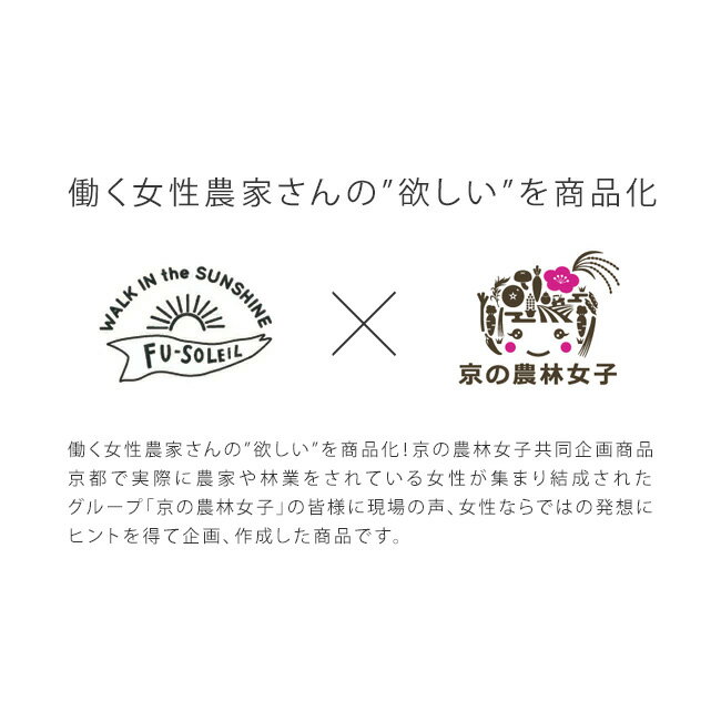 らく足袋プラス(京の農林女子モデル)長靴 レディース FU-SOLEIL フーソレイユ FU3014 働く女性農家さんの”欲しい”を商品化! 京の農林女子共同企画商品 京都で実際に農家や林業をされている女性が集まり結成されたグループ「京の農林女子」の皆様に現場の声、女性ならではの発想にヒントを得て企画、作成した商品。 毎日の作業での足の疲れを軽減させたい! その声をいただき、スニーカーソール+インソール+内側クッション材が足をしっかりサポート。 甲マチを大きくし、履き口を広くすることで、脱ぎ履きを楽々に。 内側にチェック生地を使用。 忙しく働いていてもちょっとした可愛いさで女性らしさを忘れない。 本体デニム生地でズボンを中に入れやすい丈で土ほこり、ごみが中に入りにくい。 POINT ■クッション性のあるスニーカーソールが足を優しくサポート! ■2つのベルクロ(マジックテープ)でお好みのフィット感に調節可。 脱ぎ履きもラクチン! ■つま先は丸くなっているので、ゆったりとした履き心地! ■インソールは取り外し可能で洗えるので靴内を清潔に保てます。 ■片足23.5cm:約234g 長靴なのに、この軽さ ガーデニングや農園などの軽作業におすすめの作業用長靴です。 【23.5cmサイズの参考サイズ明細】 【ソールの高さ】・・約4.0cm 【ワイズ】・・2E相当 【アッパー】・・綿 【ソール】・・EVA+合成ゴム 【重さ】・・(片足)約187g 【カラー】・・もも/やまぶき/あずき/ぶどう 【サイズ】・・22.5cm/23cm/23.5cm/24cm/24.5cm/ 25cm/25.5cm/ 関連キーワード シューズプラス しゅーずぷらす SHOESplus お洒落 可愛い 土木 バードウォッチング ガーデニングシューズ 畑仕事 つかれない つかれにくい あるきやすい RAKUTABI 阪神生地 はんしんきじ ハンシンキジ 22.5 23 23.5 24 24.5 25 cm センチ ピンク 黄色 イエロー 紫 パープル 2507