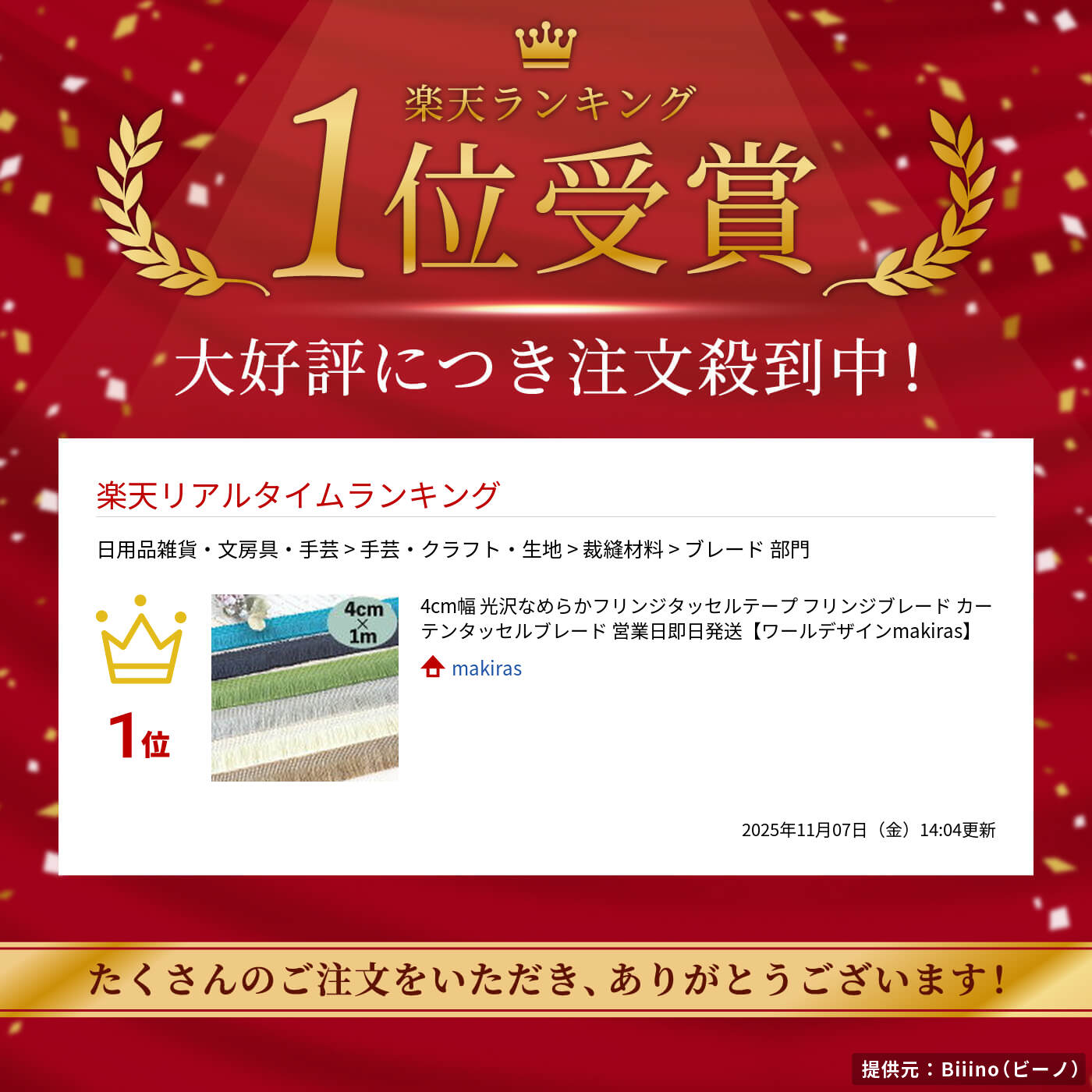 4cm幅 光沢なめらかフリンジタッセルテープ フリンジブレード カーテンタッセルブレード 営業日即日発送【ワールデザインmakiras】