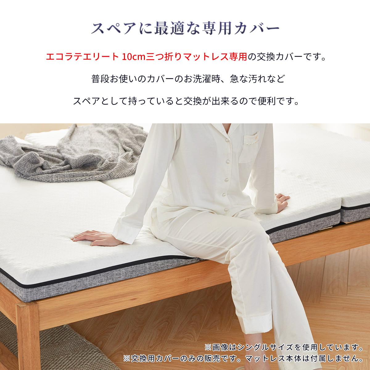 エコラテ エリート 三つ折りマットレス 専用カバー シングル 98x195x10cm 厚さ10cm マットレスカバー スペアカバー 交換用 洗濯可 ecolatte elite
