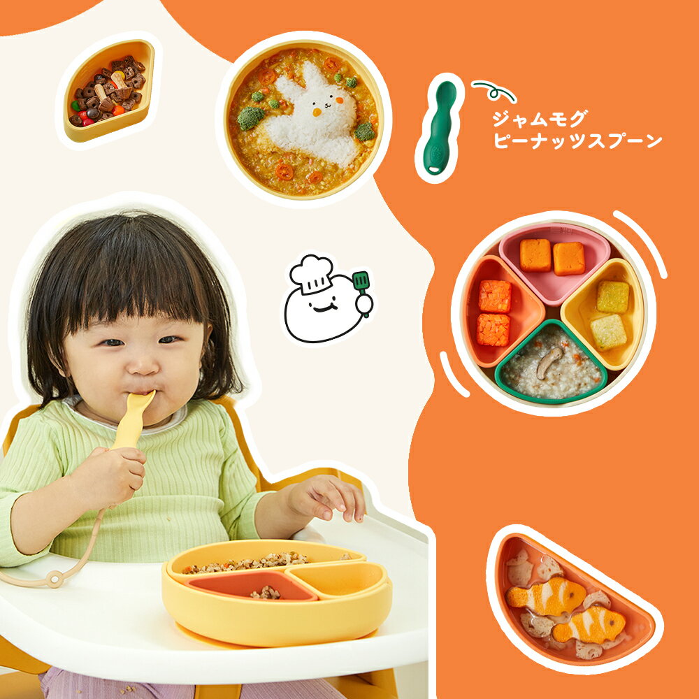吸盤付き シリコン 仕切りプレート 蓋付き ベビー食器 離乳食 幼児食 滑り止め 吸着力 強力 耐熱 電子レンジOK 食洗機対応 BPAフリー 自分で食べる練習 トレーニング食器 プレゼント ギフト [ジャムモグ]