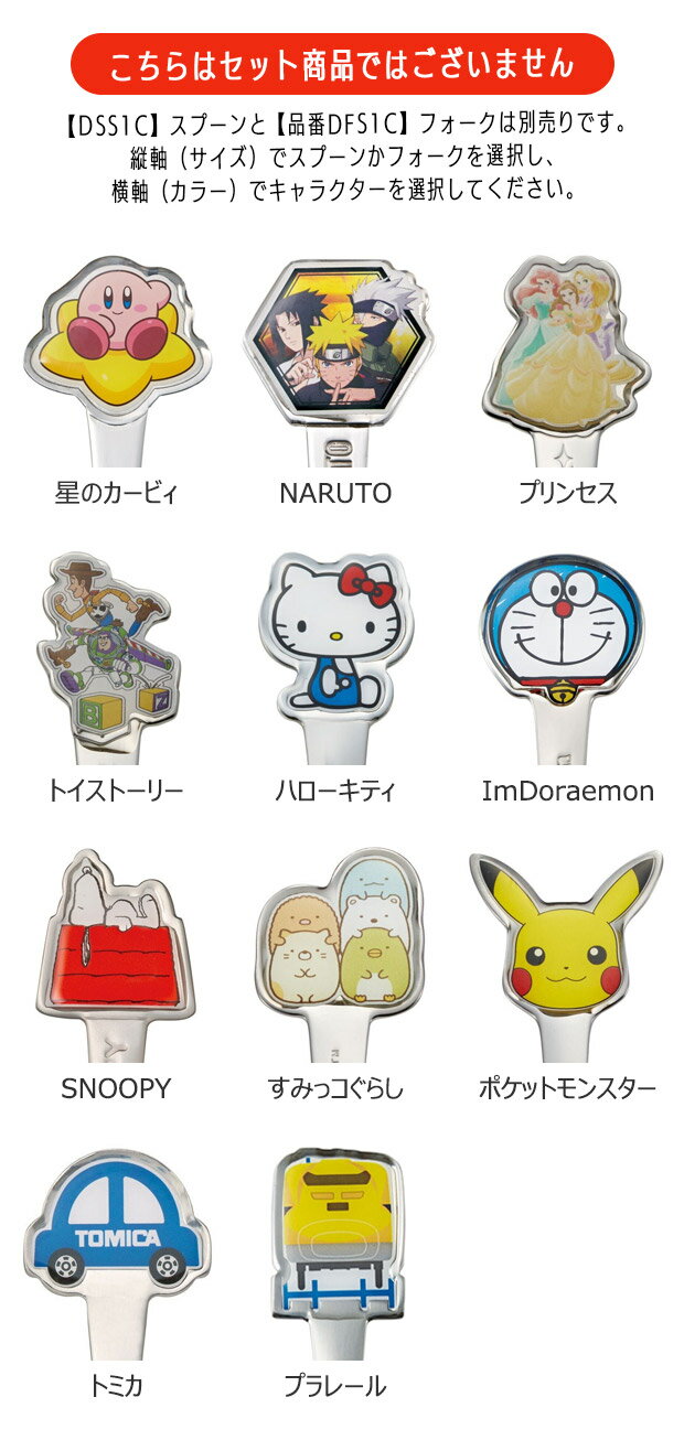 メーカー希望小売価格はメーカーカタログに基づいて掲載しています(クリックで画像を確認できます) 食洗機対応のステンレススプーン・フォークです。 キャラクターの形がとってもかわいいダイカットカトラリーです! SKATER スケーター ステンレス スプーン フォーク 単品 SKATER スプーン フォーク 単品 キッズ 男の子 女の子 子供用カトラリー 子供用スプーン 子供用フォーク キッズ用 フォーク キッズ用 スプーン 給食 食洗器対応 ステンレス ランチ ランチ雑貨 小物 お弁当グッズ 子供用弁当 遠足 ピクニック 運動会 幼稚園 保育園 小学校 通園 通学 入園準備グッズ プレゼント ギフト SKATER スケーター スケーター別売りパーツ 部品 ダイカット キャラクター プリンセス デイズニー ハローキティ キティちゃん ドラえもん スヌーピー すみっコぐらし ポケットモンスター ポケモン ピカチュウ トミカ プラレール カービィ 星のカービィ NARUTO SKATER スケーター DSS1C DFS1C ●サイズ: 【DSS1C】スプーン単品/約14cm 【DFS1C】フォーク単品/約14cm ●重さ:約30g ●カラー:全11柄×2タイプ 679193)星のカービィ/スプーン 695766)NARUTO/スプーン 566806)プリンセス/スプ-ン 566776)トイストーリー/スプーン 566448)ハローキティ/スプーン 568541)ImDoraemon/スプーン 567308)SNOOPY/スプーン 576270)すみっコぐらし/スプーン 568626)ポケットモンスタ-/スプ-ン 582592)トミカ/スプーン 582608)プラレール/スプーン 679209)星のカービィ/フォーク 695742)NARUTO/フォーク 566721)プリンセス/フォーク 566691)トイストーリー/フォーク 566462)ハローキティ/フォーク 568558)ImDoraemon/フォーク 567322)SNOOPY/フォーク 576287)すみっコぐらし/フォーク 568602)ポケットモンスタ-/フォ-ク 582615)トミカ/フォーク 582622)プラレール/フォーク ●素材:金具/ステンレス鋼、エポキシ樹脂塗料 ●生産国:中国 ●対象年齢:6歳以上 ※こちらは【単品販売】です。セットではありませんのでご注意ください。 ※縦軸(サイズ)でスプーンかフォークをご選択いただき、横軸(カラー)でご希望のキャラクターをご選択ください。 ※煮沸消毒は変形することがありますので、しないでください。仕様 大きさ 【DSS1C】スプーン単品/約14cm 【DFS1C】フォーク単品/約14cm重さ:約30g ※当店の採寸についてはこちら 素材 金具/ステンレス鋼、エポキシ樹脂塗料 生産国 中国 カラー 全11柄×2タイプ 679193)星のカービィ/スプーン 695766)NARUTO/スプーン 566806)プリンセス/スプ-ン 566776)トイストーリー/スプーン 566448)ハローキティ/スプーン 568541)ImDoraemon/スプーン 567308)SNOOPY/スプーン 576270)すみっコぐらし/スプーン 568626)ポケットモンスタ-/スプ-ン 582592)トミカ/スプーン 582608)プラレール/スプーン 679209)星のカービィ/フォーク 695742)NARUTO/フォーク 566721)プリンセス/フォーク 566691)トイストーリー/フォーク 566462)ハローキティ/フォーク 568558)ImDoraemon/フォーク 567322)SNOOPY/フォーク 576287)すみっコぐらし/フォーク 568602)ポケットモンスタ-/フォ-ク 582615)トミカ/フォーク 582622)プラレール/フォーク この商品の特徴 食洗機対応のステンレススプーン・フォークです。 キャラクターの形がとってもかわいいダイカットカトラリーです! SKATER スケーター ステンレス スプーン フォーク 単品 SKATER スプーン フォーク 単品 キッズ 男の子 女の子 子供用カトラリー 子供用スプーン 子供用フォーク キッズ用 フォーク キッズ用 スプーン 給食 食洗器対応 ステンレス ランチ ランチ雑貨 小物 お弁当グッズ 子供用弁当 遠足 ピクニック 運動会 幼稚園 保育園 小学校 通園 通学 入園準備グッズ プレゼント ギフト SKATER スケーター スケーター別売りパーツ 部品 ダイカット キャラクター プリンセス デイズニー ハローキティ キティちゃん ドラえもん スヌーピー すみっコぐらし ポケットモンスター ポケモン ピカチュウ トミカ プラレール カービィ 星のカービィ NARUTO SKATER スケーター DSS1C DFS1C
